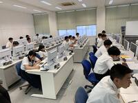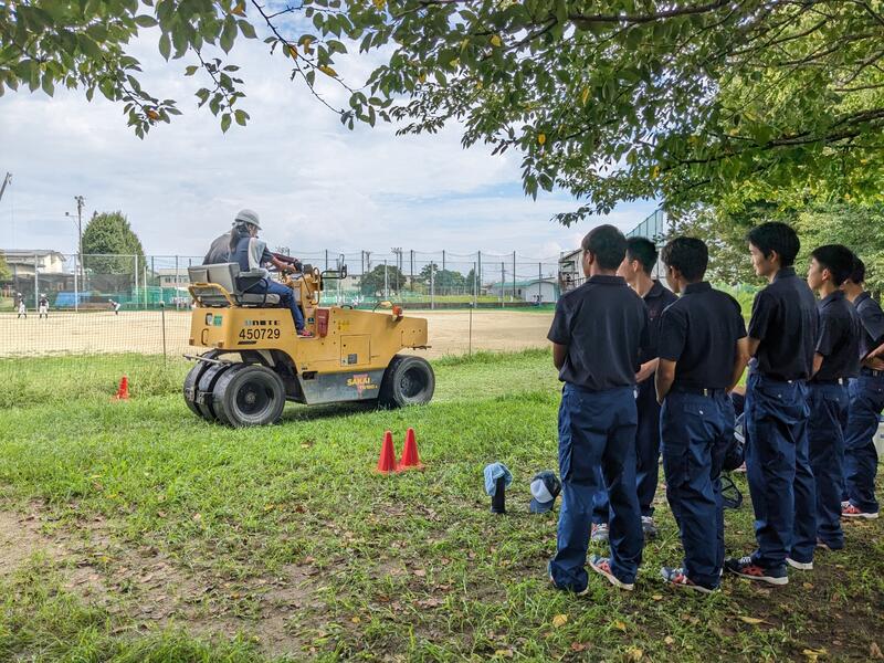 土木科1年生と2年生が小型車両系建設機械特別教育とローラー特別教育を受講しています。学科を21日と24日に受け、25日に実技を行っています。