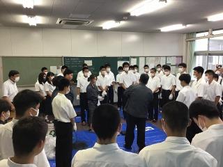 アスファルト舗装実習(座学)を1年生対象に行いました。日章工業株式会社の野口様(H3土木科卒)より講義をしていただき、今年で3年目です。