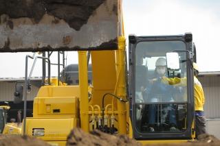 本日はその3次元設計データを基にICT建機を動かし、施工を行いました。今回施工を行う建機は20トンの油圧ショベルで、迫力のある建機です。設計データの座標の、建機のアームやバケットが自動アシストしてくれるので、経験の少ないオペレーター方でも施工することができます。コマツの方のご指導の下、無事に施工をすることができました。