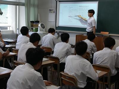 教育実習生が研究授業を行いました。時間をかけて準備した『電気回路』の授業は大成功でした!ぜひ熊本県の工業の先生を目指して頑張ってください!