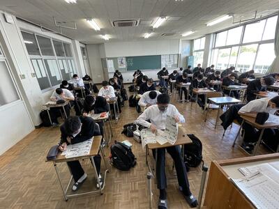 電気科2年生が第二種電気工事士の受検に向けて朝7:35から勉強に取り組んでいます!