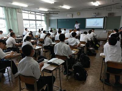今週から、本校電気科を卒業した佐賀大学4年の教育実習生が来ており、5/31は1年『科学と人間生活』でイオン化傾向について授業参観しました。また、他学科を卒業した教育実習生が、2年『保健』でKYT(危険予知トレーニング)に関する実地授業を行っていました。