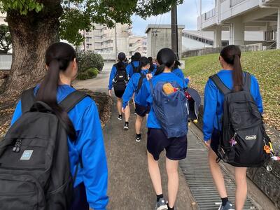 クラスや科の生徒たちで励まし合いながら無事到着することができました