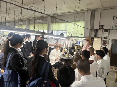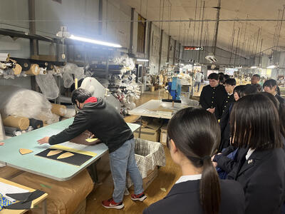 ベレー帽のブランドとして知られるフラミンゴ様の工場を見学させていただき、帽子が完成するまでの工程や、工程管理の工夫について学びました。実際の現場を見ることで、座学だけでは得られない多くの気づきを得ることができました。