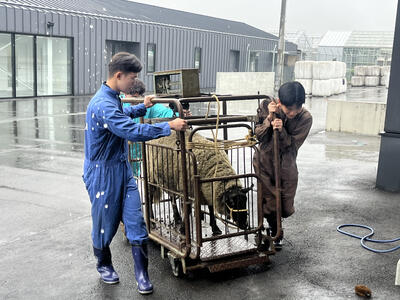 午後は東海大学臨空キャンパスを訪問し、羊の毛刈り体験を行いました。毎年恒例の体験ですが、今年は約88kgもある大きな雄羊に挑戦。生徒は緊張した面持ちでバリカンを扱っていましたが、羊の体格のお陰か、身体に張りがあるため例年よりもスムーズに終えることができました。