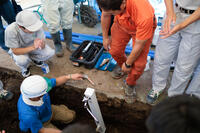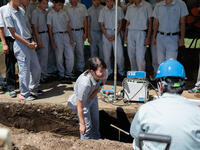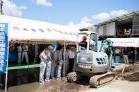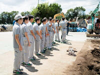 重機で掘削を行い、地中に管を埋設する実習を行いました。管に電気を流して圧着、水栓に繋げて水が流れるまでの一連作業を行いました。また、管の破損に対しての止水作業など水に濡れながらの作業だったため、楽しく実習を行うことができました。