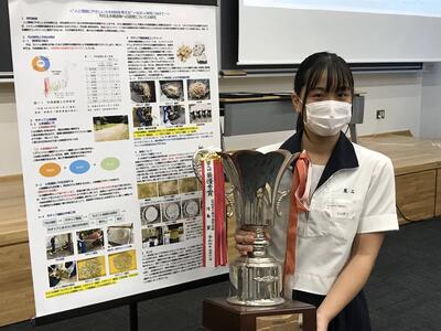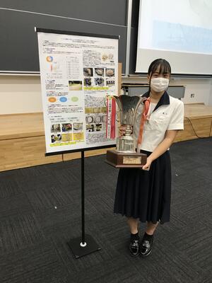 内容としては、熊本県で広範囲に繁殖している竹を有効活用するためにチップ状に粉砕し土系舗装として活用しようとするものです。実際に竹チップによる土系舗装実験を行い、高い評価を受けることができました。結果として最優秀賞を受賞しました。ポスター作成・実験・プレゼンなど大変だったと思います。