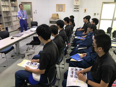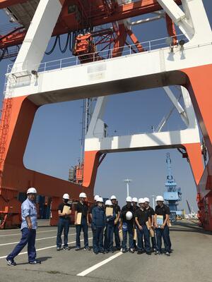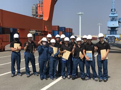 今年度公務員試験を受験する12名の生徒を含む13名で、熊本港の施設・設備を見学した。今回は、ケーソンの建設見学、今年度新たに建造・就航した海洋環境整備線「海輝」の役割の説明とコンテナターミナルなど、港の関わる様々な施設を見学することができ、国土交通省の港湾に関する業務を知ることができた。