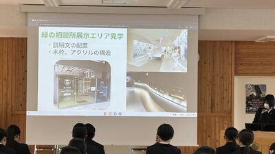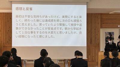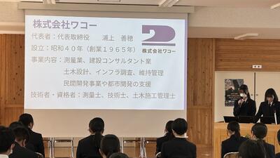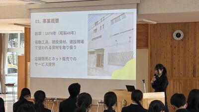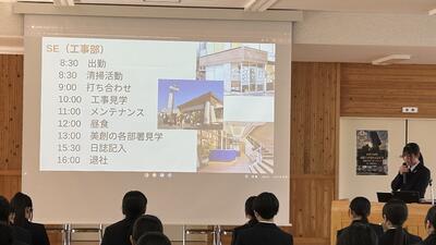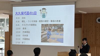 自分たちの経験の振り返り、各事業所の業種や仕事内容などを知る機会にし、発表準備を通して何かを行うための計画・立案力、複数人でいるところはリーダー性、もしくは自分の役割を見つける力・発見し、人に伝える力の育成をするために毎年行っています。もちろん、1年生への進路選択のための情報提供にもなります。