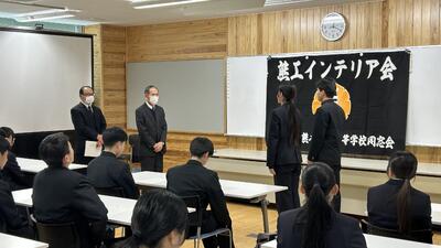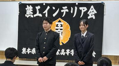 令和8年2月6日(金) 宮部会長、田上副会長にご出席頂き、卒業を控えた3年生の「熊工インテリア会」の入会式が行われました。