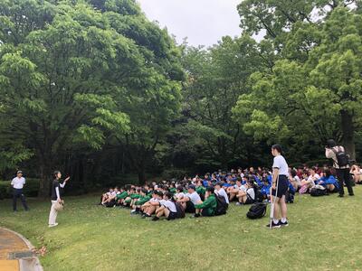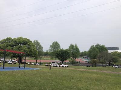 運動公園では各科ごとの歓迎行事が行われて、とても盛り上がってました。