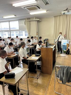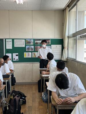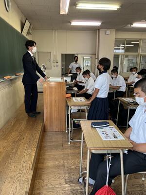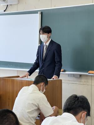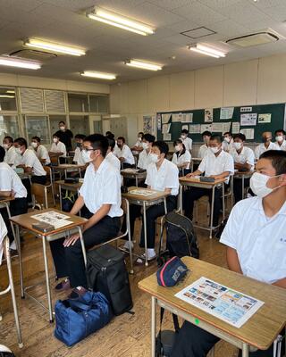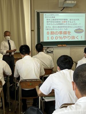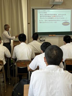6月2日(木)令和元年度卒業生の坂本祐之助君が来校し、機械科3年生向けに進路講話を実施しました。坂本君は現在(株)荏原製作所熊本工場に勤務し、半導体製造の仕事をしているとの事です。講話の内容は、会社概要説明、進路目標達成までのプロセス、社会人としての心構え等を生徒達にわかりやすく説明してくれました。生徒達も真摯に話を聞き、質問も自主的に行い、とても充実した時間となりました。坂本君の今後の活躍を祈念しています。お忙しい中、貴重な時間を作っていただきありがとうございました!