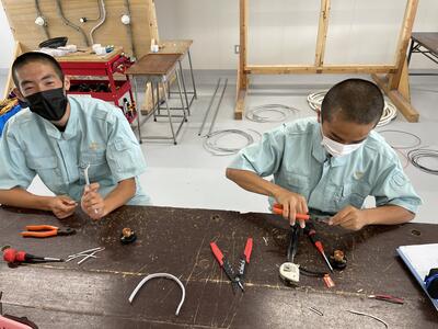 初めての作業や工具に戸惑いながらも「電線の接続法」に取り組みました!