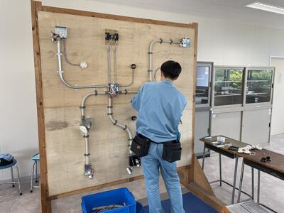 6/12(日)に開催される「ものづくりコンテスト県大会電気工事部門」に出場する選手による実演会を行いました。