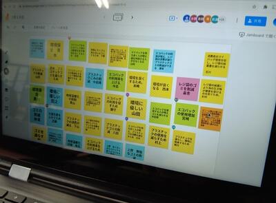 教科は「社会基盤工学」で、建設業における循環型社会構築に向けた取り組みについての授業です。ICTを取り入れた授業で、クラス内の意見を共有するGoogle Jamboardを、活用されていました。多くの先生が見学に来ていただき、楽しい授業でした。