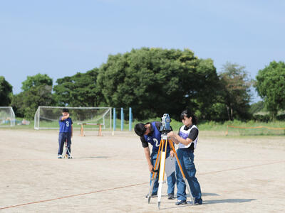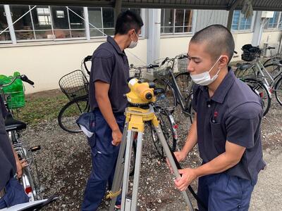 連携内容:路線測量・縦横断測量実習(TS測量・水準測量)(本校内)