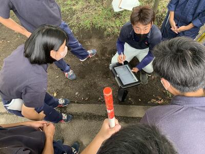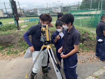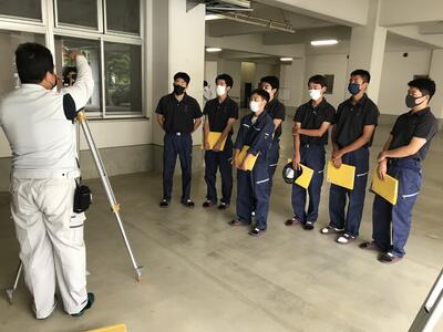毎年熊本県測量設計コンサルタンツ協会へ依頼を行い、3年生の課題研究(コンサルタント班)で訪問実習をしていただき、測量技術の習得・最新測量技術の紹介をしていただいています。