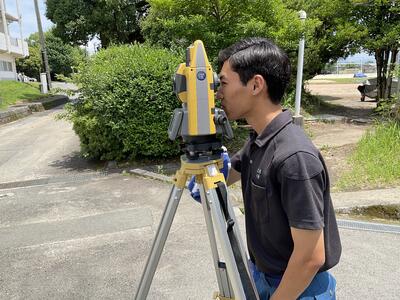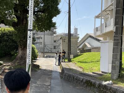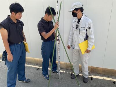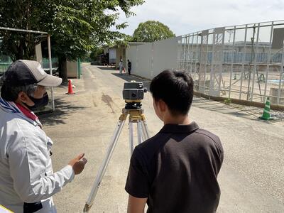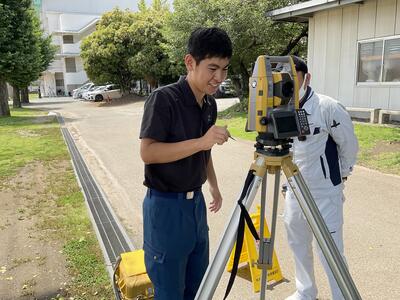 今回は、旭測量設計(株)様に来校していただき、路線測量及び縦横断測量実習を行いました。