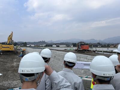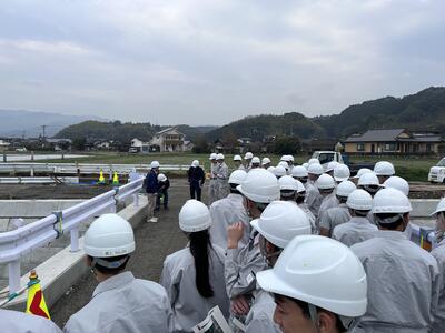 令和2年7月豪雨から復旧・復興に向けたまちづくり、建設用3Dプリンターを活用した施工を学ぶために見学会へ土木科2年生が行きました。