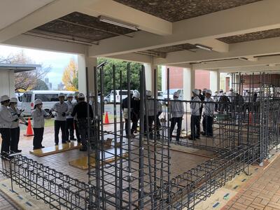 12月11日に、2年生が株式会社東京朝日ビルド 様、株式会社セルアーキテクト 様から、本校建築科OBを含めた10名の方々を講師に鉄筋の結束や配筋や型枠組み立て作業、MRを用いた疑似体験などを行いました。