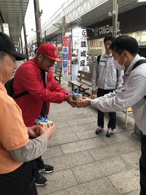 課題研究(地域連携班)では、健軍商店街と連携した取り組みを行っています。本日(19日)、製作した作品の寄贈式を行いました。[傘立て2台、木製コースター21枚]寄贈させていただいたものは、健軍商店街にある、藤まる食堂 様、ちょい呑み益城屋 様をはじめとした、健軍商店街内にあります。お近くを訪れる際はぜひご覧ください!