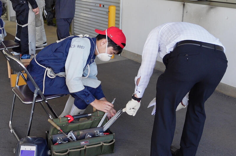 ゼッケンを受け取り,溶接棒,工具等揃っているか最終チェック