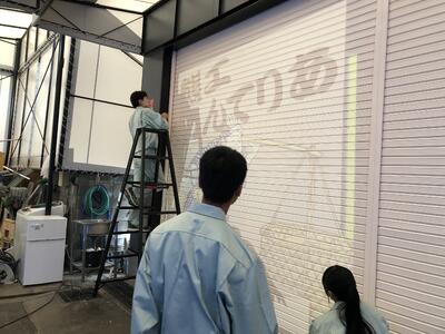 株式会社オフィス・エスビーケー様よりシャッターアートのご依頼があり、インテリア科3年課題研究グラフィックデザイン班にて取り組みをスタートしました。