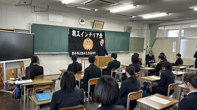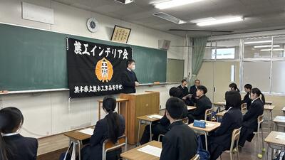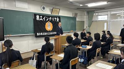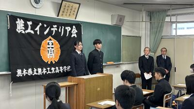 本日2月7日(金)、宮部会長、田上副会長のご参加のもと3月に卒業予定の3年生に対して、熊工インテリア会(インテリア科同窓会)の入会式を行って頂きました。
