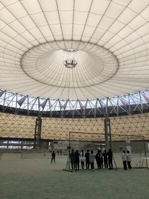 あいにくの天候でしたが航空史料館にて平和学習、体育大学の最先端テクノロジーを見学、屋根付きコートでの測定・練習、インドアコートでのネットプレー強化練習など大変有意義な合宿となりました。