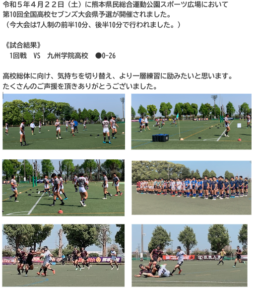 高校からラグビーを始めた部員も多数出場しています。熊工でラグビーを始めましょう!!