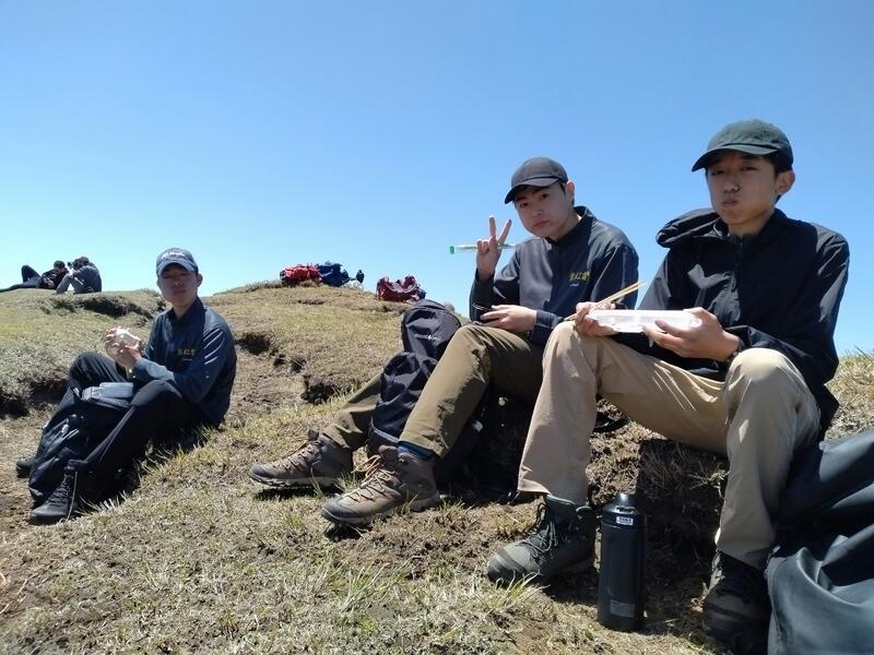 ↑ 高校総体下見④杵島岳山頂にて もぐもぐタイム(R7.4.26) ↑