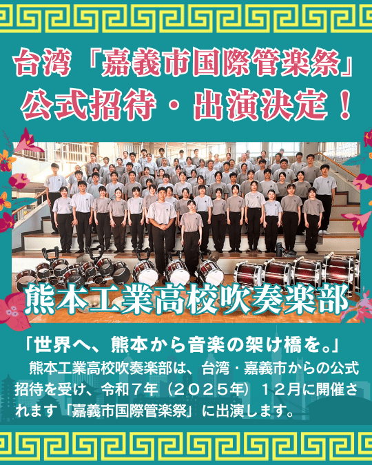 熊本工業高校吹奏楽部は、令和7年12月に台湾で開催される