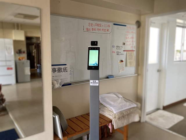 「熊工経営同友会」様よりAI顔認証付き検温器を寄贈頂きました。寮玄関ホールに設置しています。