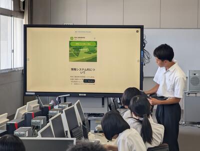 情報システム科では、プログラミング、ネットワーク、デザイン、課題研究などの専門科目を通して、