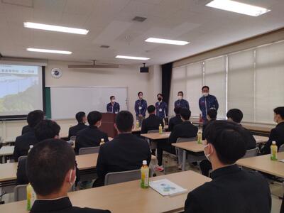 一昨年3月に電子科を卒業した坂口君(富合中・サッカー部)を含めて4名に講話して頂きました。
