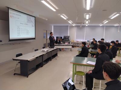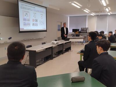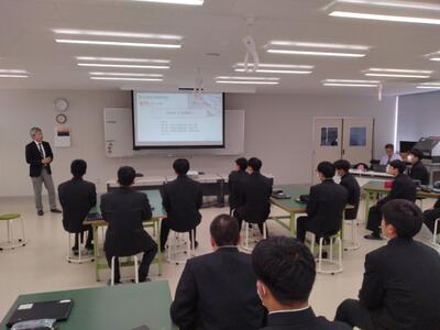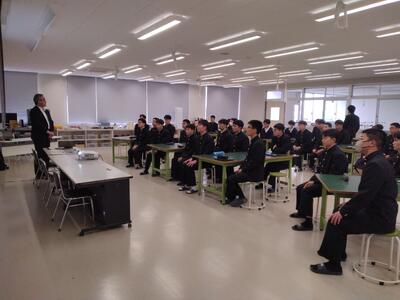第1回目(10月)は3科(工業化学、情報技術、電子)の2年生で聴きましたが、今回は電子科2年生だけの授業となりました。