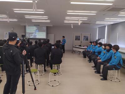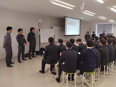 本日は電子科2年生へ、門岡社長、電子科卒業の鍋田君(R6卒)から講話して頂きました。