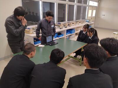 一昨年3月に電子科を卒業した栗林君(帯山中)と小川様にご来校いただき、講話をお願いしました。