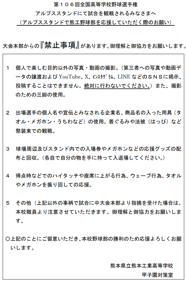 今後とも熊本工業高校野球部への変わらぬご支援、ご声援を賜りますようお願い申し上げます。
