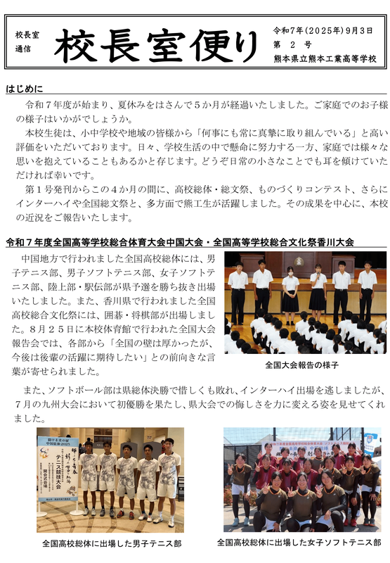 令和7年度「校長室便り」№2