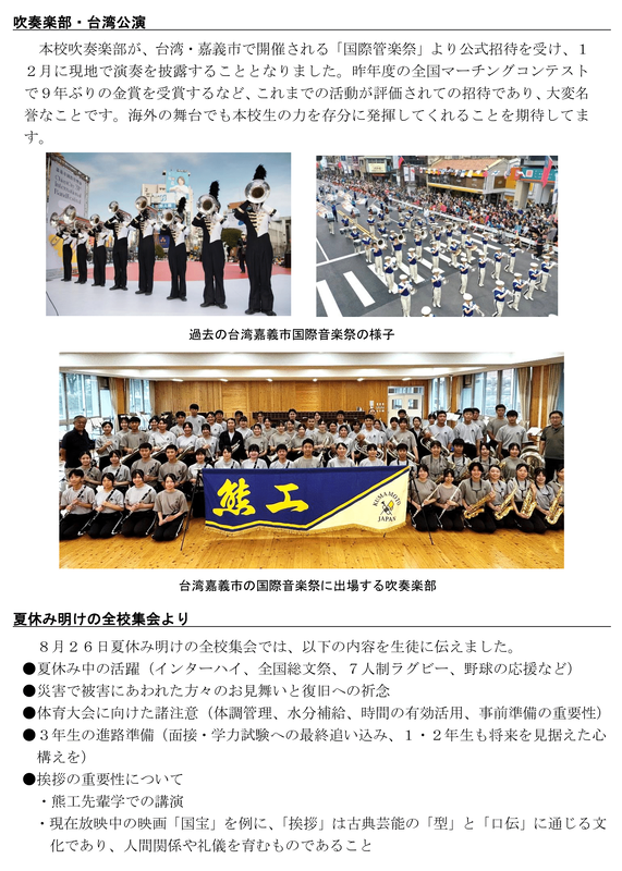 学校長からは熊工魂を感じる隙のない体育大会であったと、生徒たちのがんばりをたたえる言葉をいただきました。