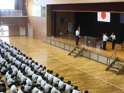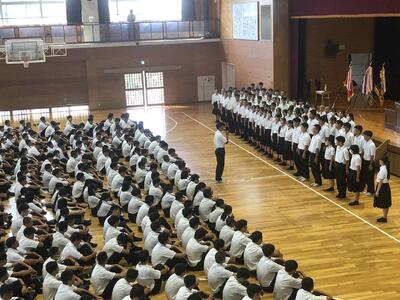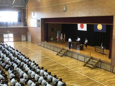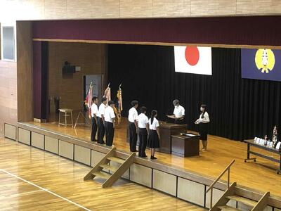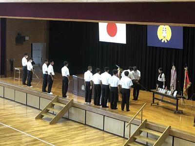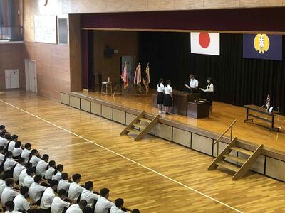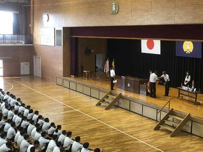 始業式に先立ち、表彰式と全国大会推戴式が行われました。