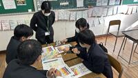 各クラスで4名のグループを10班をつくり、家族構成、住まう場所、ハザードマップなどを念頭に2015年の台風15号を参考にマイタイムライン作成を行いました。