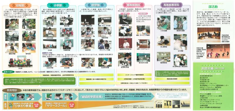 人間尊重の精神と安全意識の高揚を基底におき、健やかな身体と豊かな感性を育むとともに、各種の体験活動をとおして基礎的・基本的な学力と専門技術力を高める。併せて、視覚障がいに伴う種々の困難を主体的に改善克服し、自らの意思で進路を選択し、実現を目指して努力する「生きる力」を育成する支援教育を推進する。