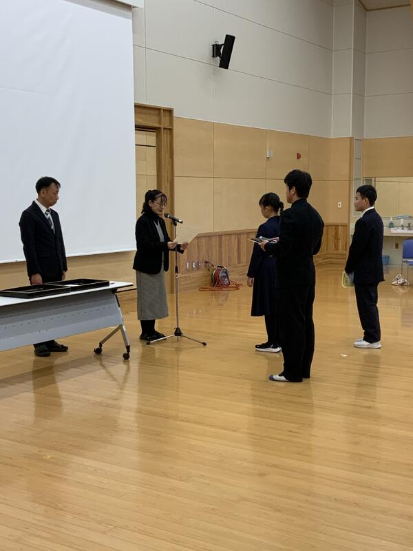 学校長から一人一人に賞状や合格証が授与されたのち、結果についての感想や次年度への意気込みを発表しました。