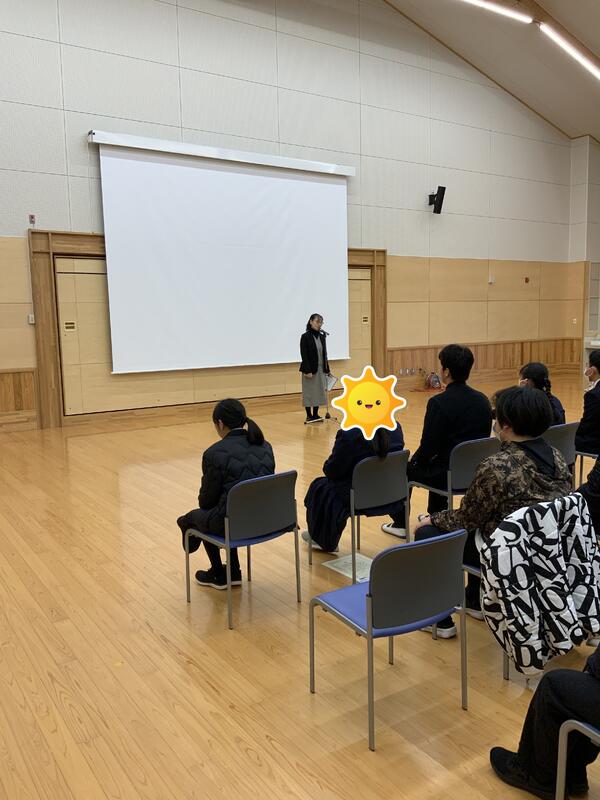 校長先生からは、本校を卒業し、あん摩マッサージ指圧師として社会で活躍されている方のお話がありました。社会の中で立派に活躍されている卒業生の方のお話を聞くことができ、私たちもとても嬉しいです。