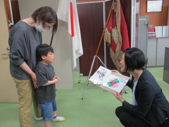 今週は、久しぶりに聾学校幼稚部に遊びに行きました。お土産のお礼に折り紙をもらいました。涼しくなったら、お外で一緒に遊んでね。