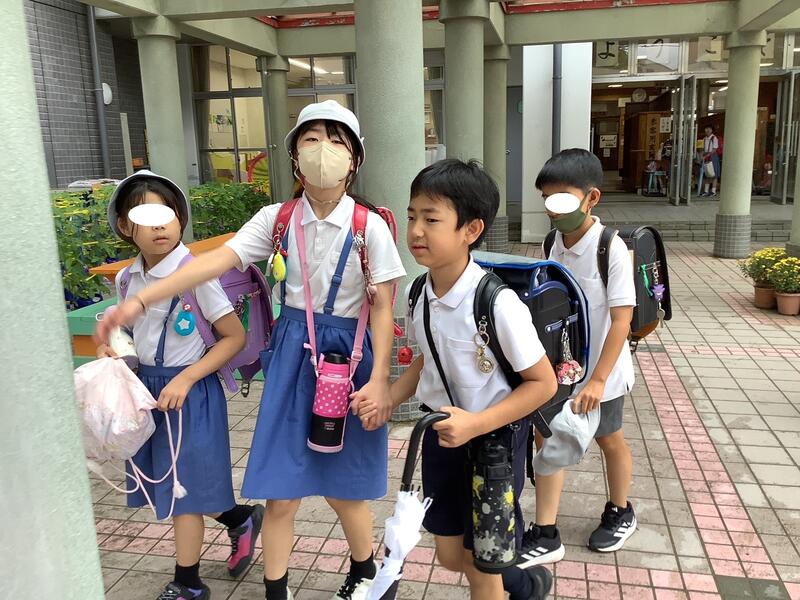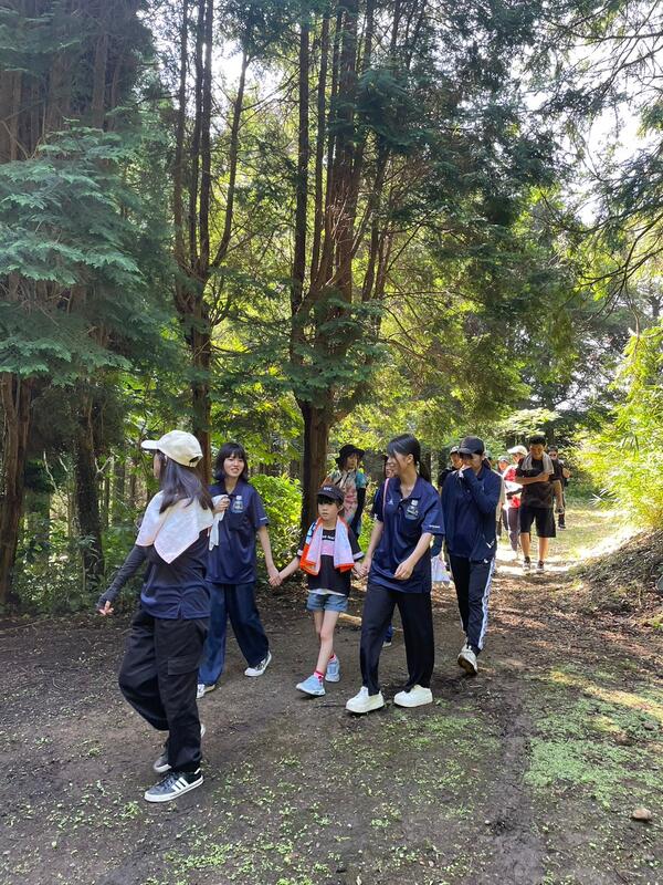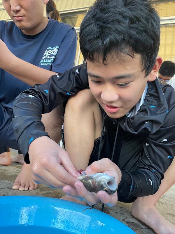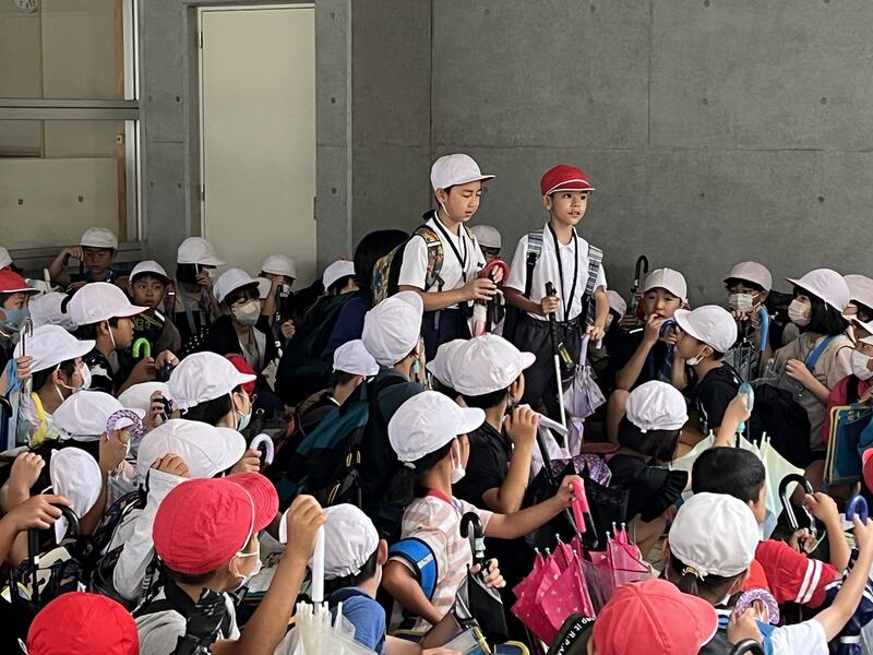 歓迎行事は水前寺江津湖公園の涼しい木陰で行い、各クラスで考え練習してきた出し物を楽しみました。水辺のザリガニは、はさみしか見つけることができなかったけれど、小さなエビを捕まえ、冷たい湧き水、おいしいお弁当、おやつ交換など、みんなで過ごす特別な1日となりました。