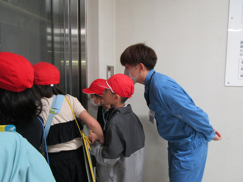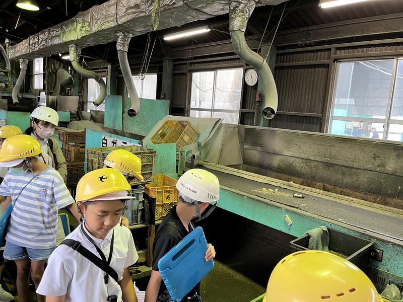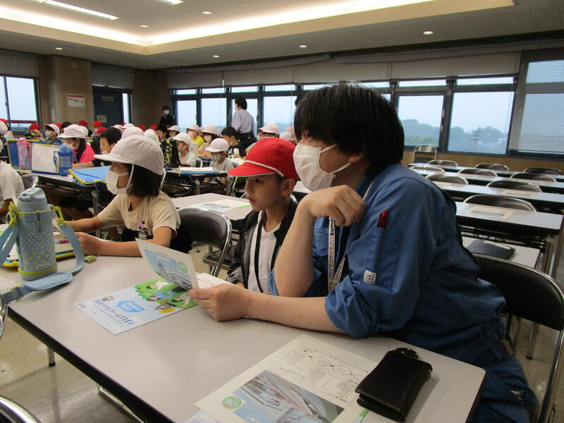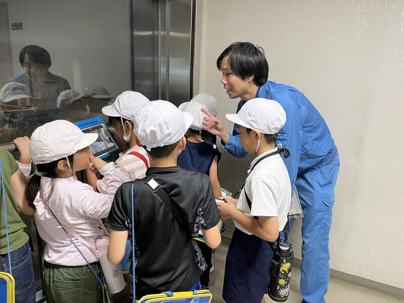 環境工場では、職員の方が児童のそばに来て工場内の様子を詳しく教えてくださいました。
