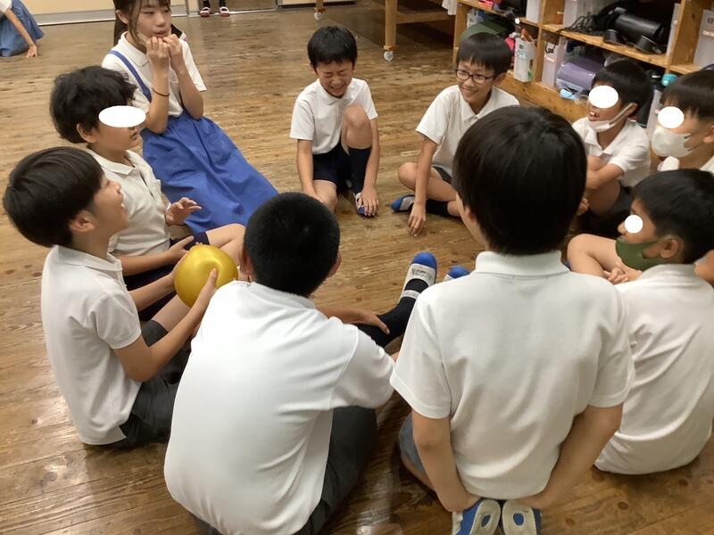 昼休みには、みんなで輪になり、ゲームを楽しみました。
